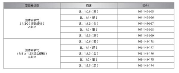 超聲波能否成功匯集取決于焊頭表面移動(dòng)的振幅正確與否,而振幅的大小很大程度上屈居于待焊接工件的尺寸和樣式。變幅器可以當(dāng)作一個(gè)機(jī)械式變壓器,用來(lái)提高或降低通過(guò)焊頭作用于工件上的振動(dòng)振幅。