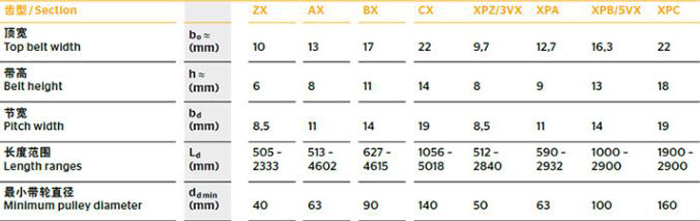 切邊標(biāo)準(zhǔn)三角帶符合DIN2215和DIN7753標(biāo)準(zhǔn),能夠滿足嚴(yán)格的傳動(dòng)要求。適合小型帶輪傳動(dòng)工況,專為高速的工業(yè)傳動(dòng)系統(tǒng)而設(shè)計(jì)。適用于輕型傳動(dòng)系統(tǒng),如:干燥器和園藝設(shè)備。